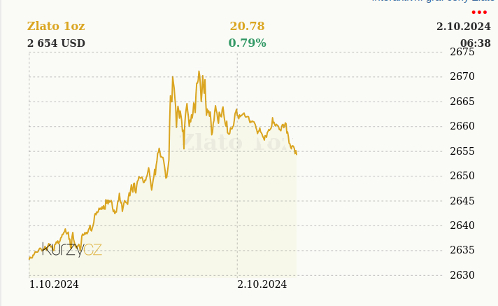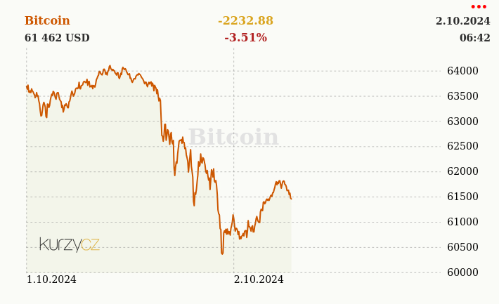 Zlato 1. října rostlo asi o 1,4 % a ceny ropy vyskočily až o 7 % a dosáhly 72 dolarů za barel. Bitcoin naproti tomu padal a zaznamenal ztrátu asi 3 500 USD.