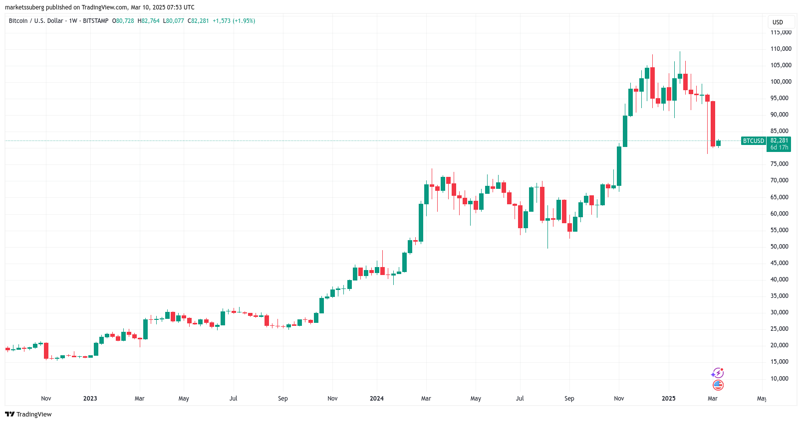 Bitcoin začíná druhý týden března na rozcestí mezi běžně hlubokou korekcí v rámci bull marketu a potenciálním začátkem medvědího trhu. Nejnovější týdenní svíčka, která se ponořila na 80 000 dolarů do týdenního uzavření, vyniká z různých negativních důvodů.