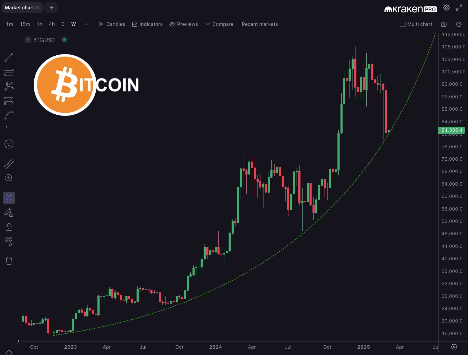„Bitcoin je zpět v kritické zóně týdenního parabolického trendu,” napsal analytik Kevin Svenson a dodává: