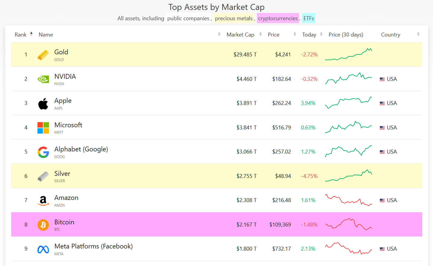 K dosažení kapitalizace 30 bil. USD Bitcoin potřebuje vzrůst cca 13,8 násobně na cenovku 1 504 000 USD. Pokud by však cena zlata nadále rostla, ani to by k dorovnání kapitalizace zlata nestačilo.