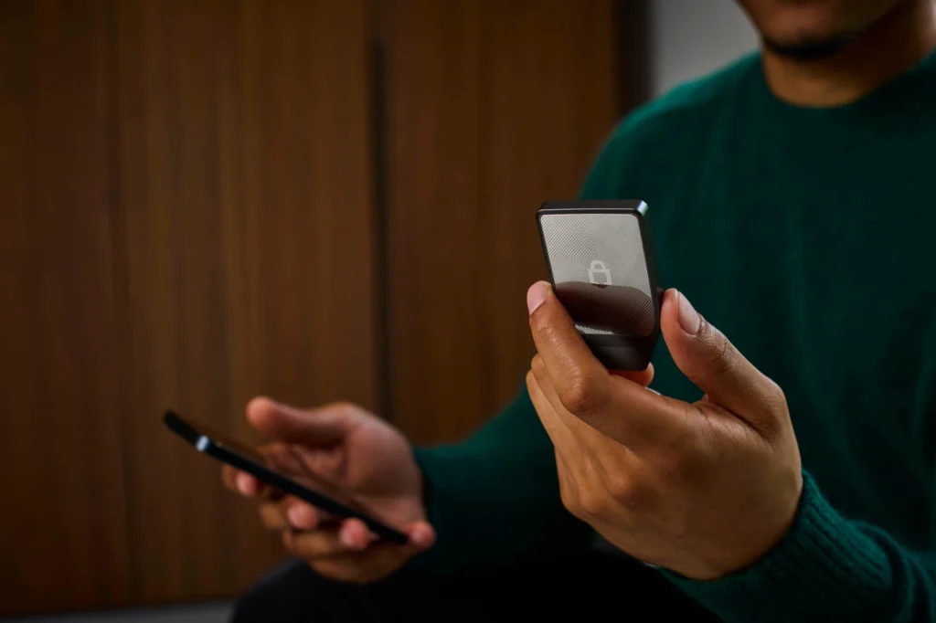 Peněženka Safe 7 disponuje bezdrátovým připojením s Bluetooth low energy (BLE), což velmi usnadňuje připojení zařízení k mobilu nebo počítači kdekoli.
